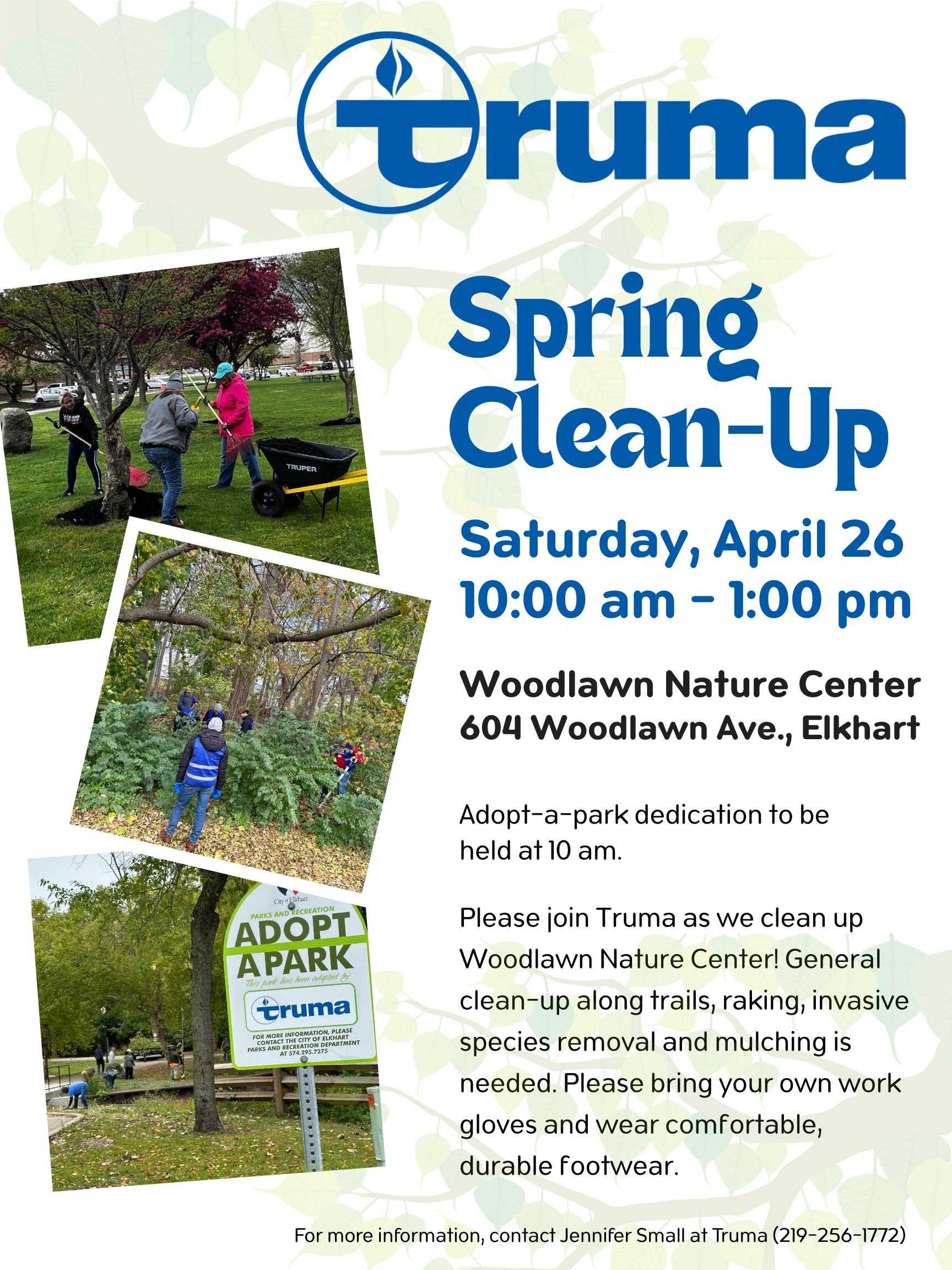 Grab your friends, family, and a rake if you have one, and join us for a Spring Clean-Up at Woodlawn Nature Center (604 Woodlawn Ave, Elkhart) on Saturday, April 26 from 10 AM to 1 PM!